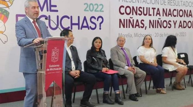 Presentan resultados de la Consulta Nacional Infantil ¿Me Escuchas? 2022. Participaron más de 1 millón 200 mil niñas, niños y adolescentes del país Morelia, Michoacan, 20 de febrero de 2023.- En el marco de la presentación de resultados de la Consulta Nacional a Niñas, Niños y Adolescentes “¿Me Escuchas? 2022”, el gobernador Alfredo Ramírez Bedolla, manifestó […]