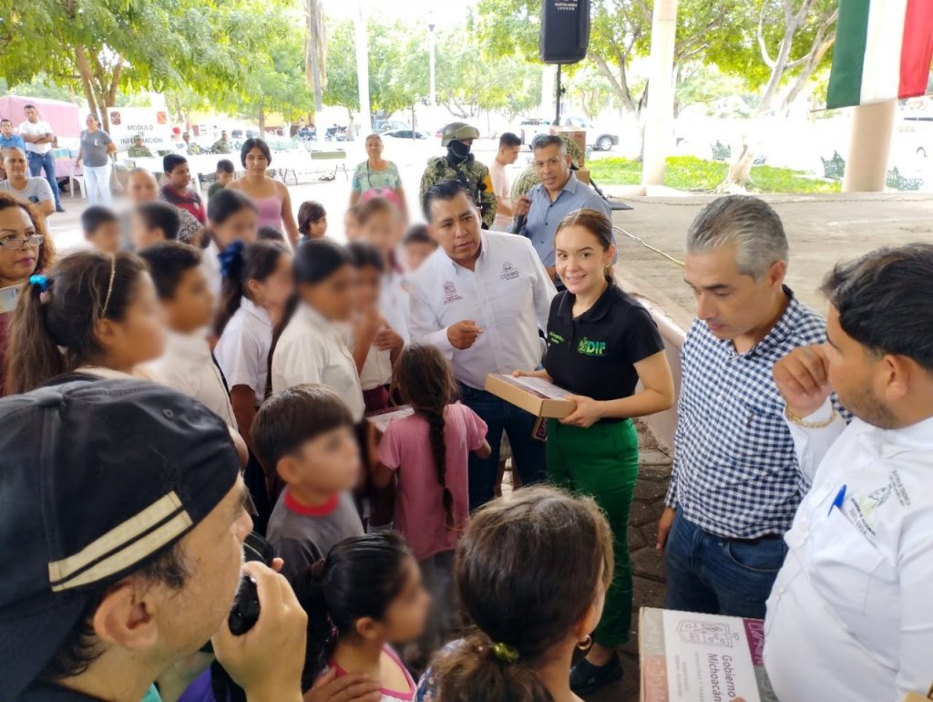 Las niñas y los niños de la comunidad, también conocida como La Ruana, recibieron paquetes escolares, herramientas que les serán de gran utilidad para mejorar su rendimiento académico, y con ello, desalentar el abandono escolar, ya que para Michoacán es prioritario que la niñez tenga una educación de calidad, refirió el titular del organismo.