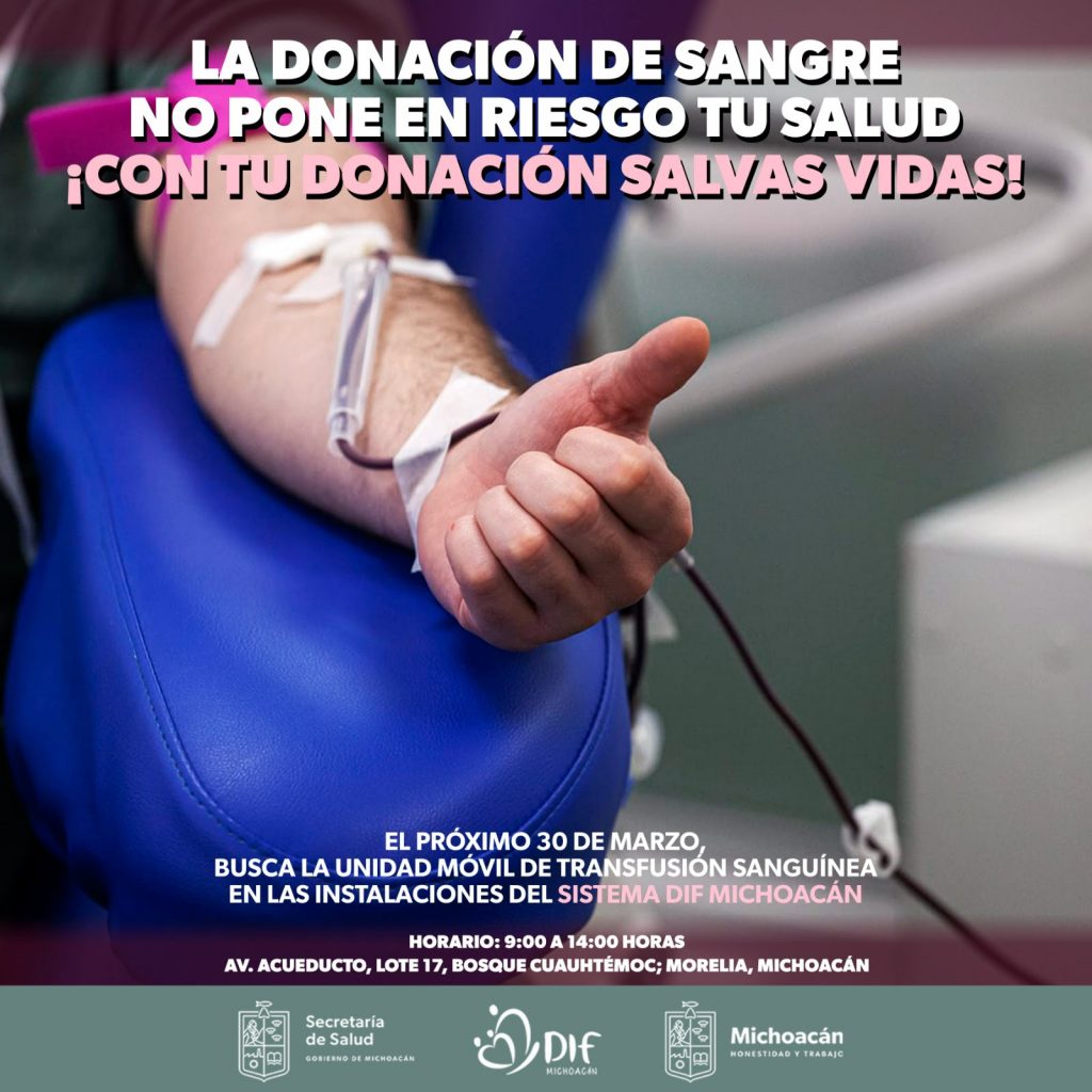 Por ello se invita a la población en general a que de manera altruista asista a donar sangre, y con ello, contribuir a salvar vidas. De manera particular, esta donación será para cuando las niñas, niños y adolescentes bajo el resguardo del Sistema DIF estatal, la requieran.