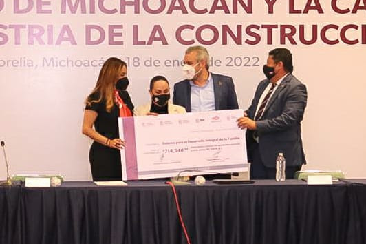 En el evento, donde también participaron constructores, el Comité de Damas de la CMIC, funcionarios estatales y el Consejo Coordinador empresarial, la cámara entregó un cheque en apoyo a las acciones que realiza el sistema DIF Michoacán.