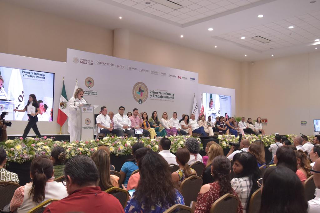 Morelia, Michoacán, 25 de septiembre de 2023.- Por ser un referente en el país, el programa de estancias Núcleos Infantiles para el Desarrollo Social (Nidos), que opera a través del Sistema DIF Michoacán, se presentó en el primer encuentro nacional Primera Infancia y Trabajo Infantil, que se celebra en Mazatlán, Sinaloa, del 25 al 27 de septiembre.